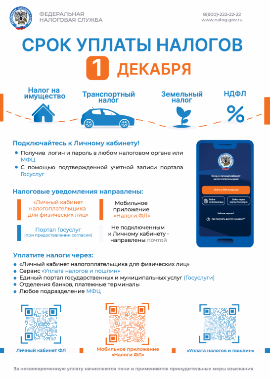Срок уплаты налогов - до 1 декабря!