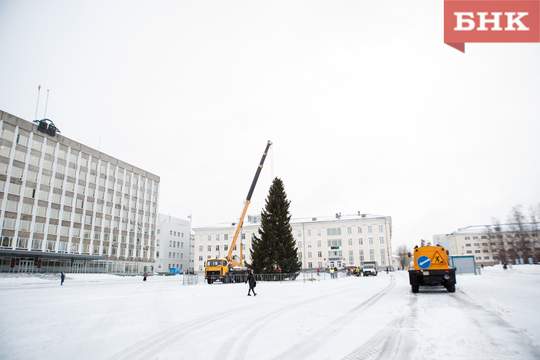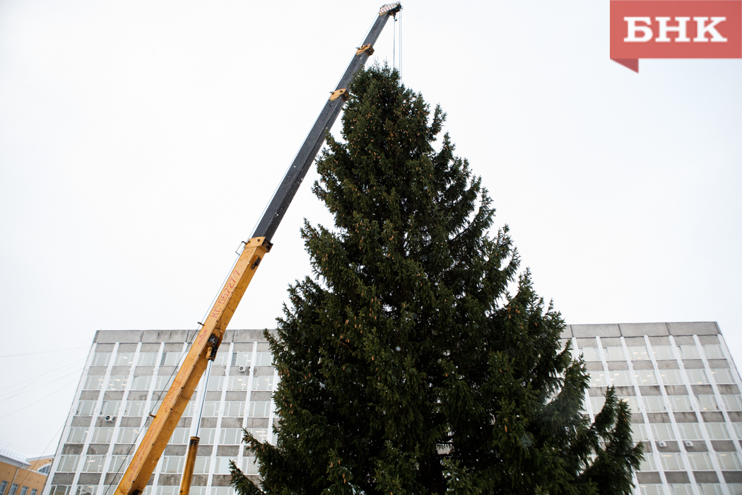 Праздничное дерево накануне доставили в столицу Коми из сыктывдинского Яснэга.