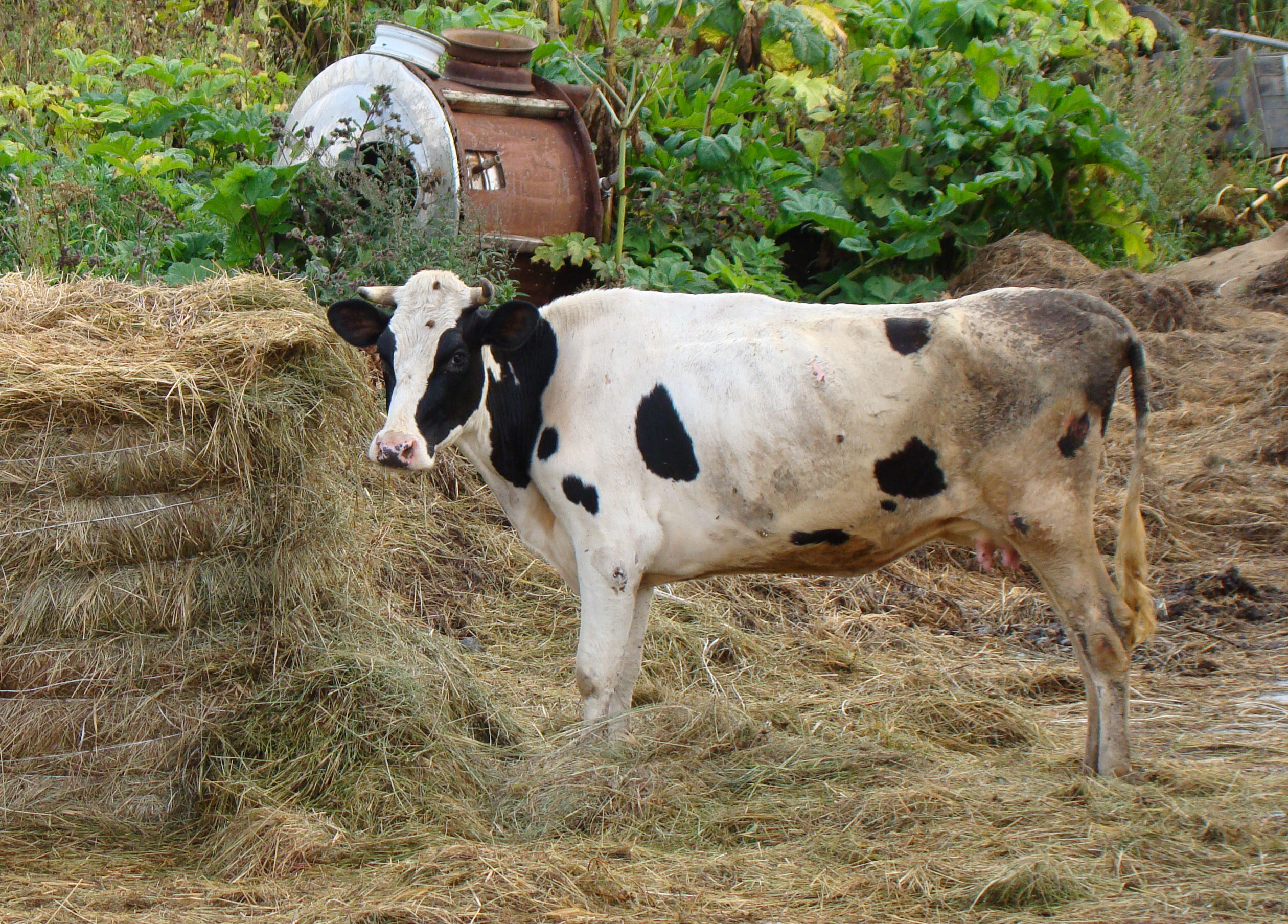 Когда мы подъехали к ферме по дороге, выложенной из дорожных железобетонных плит, возле фермы и внутри неё находилось всего несколько голов скота. Остальные были на пастбище. В тот момент как раз автомашина-цистерна Сыктывкарского молочного завода забирала молоко. Неожиданностью стали увиденные на молочной ферме два индюка, «переговаривавшиеся» между собой на своём языке. Спросил, как они уживаются с коровами. Сказал, что нормально. Индюшка даже яйца приносит, правда не высиживает.