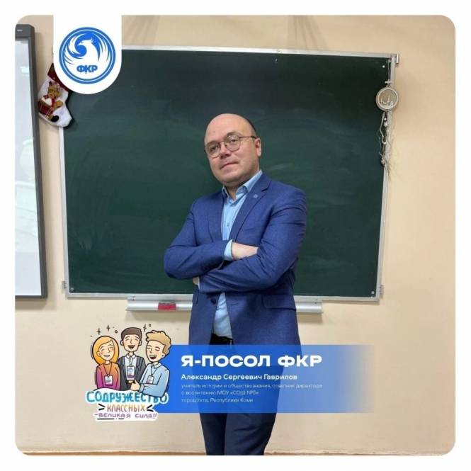 Дирекция Форума классных руководителей (ФКР) назвала имена 87 послов из 87 регионов, которые будут отвечать в 2025 году за продвижение инициатив форума на уровне своих регионов. В Коми это учитель истории и обществознания, советник директора по воспитанию Александр Гаврилов.
