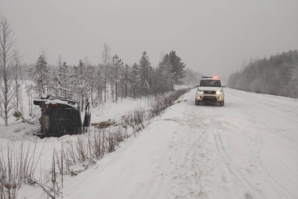 Второе ДТП в Койгородском районе случилось спустя полсуток. В 12:35 мужчина 1960 года рождения за рулем УАЗа ехал по дороге Визинга — Кажим. На 96-м км он не справился с управлением, съехал в кювет и опрокинулся.